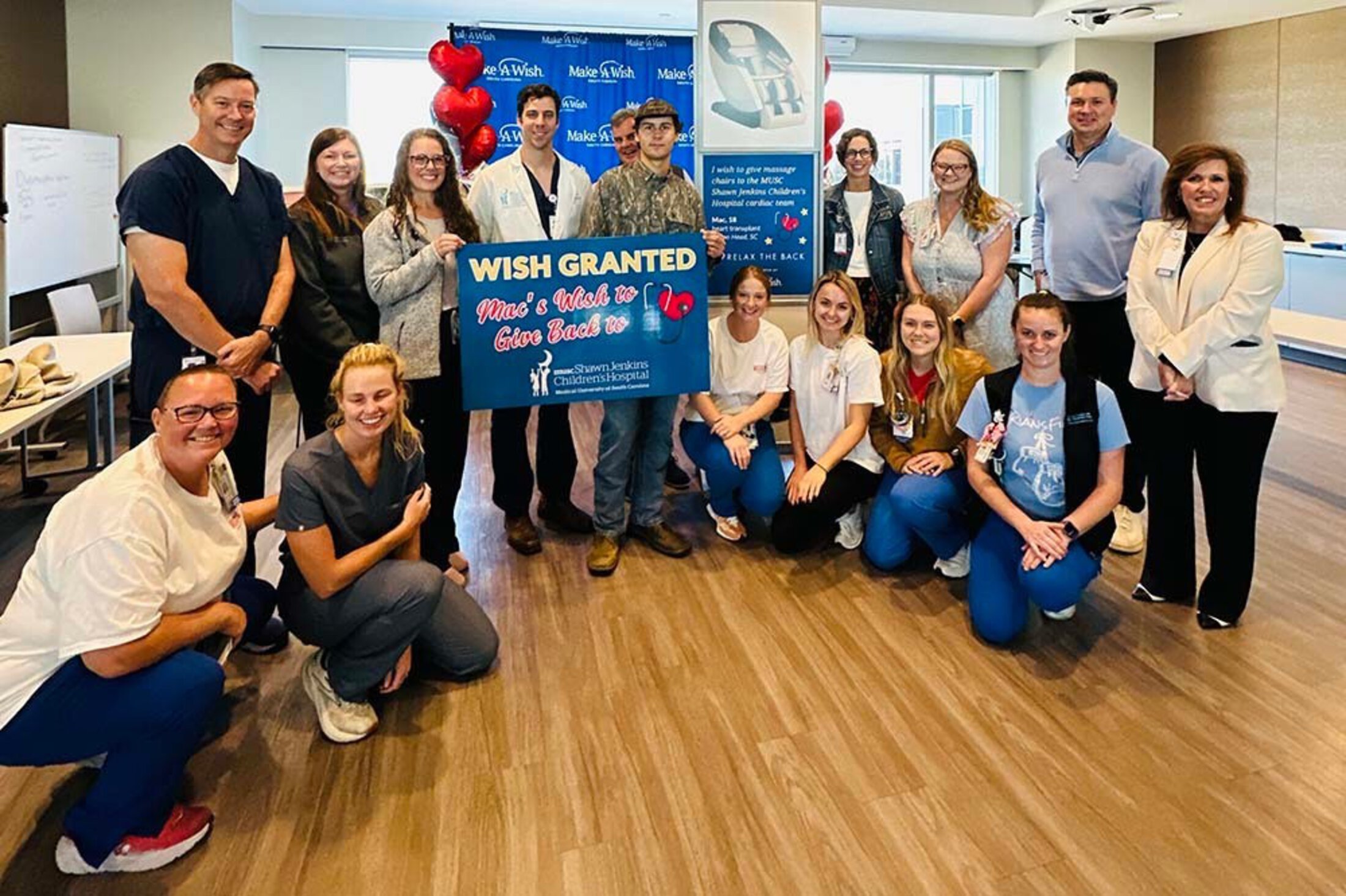 Instead of asking for something for himself, Mac, now 18, chose to request the donation of a pair of luxurious massage chairs to the team that took care of him at the MUSC Shawn Jenkins Children’s Hospital in Charleston. “They did a lot for me. I mean, they saved my life, so it was the least I could do. They work hard all the time, so they deserve to have something to help them relax and keep them going,” Mac said.