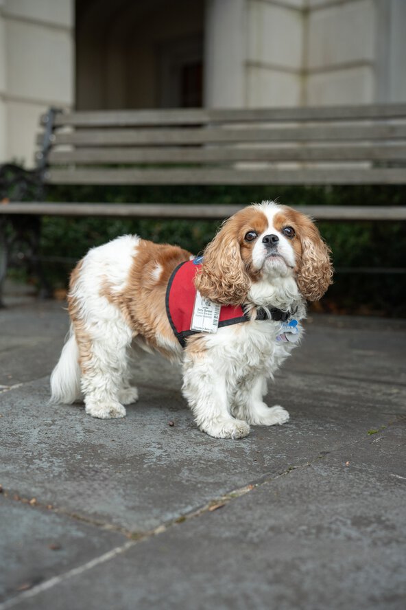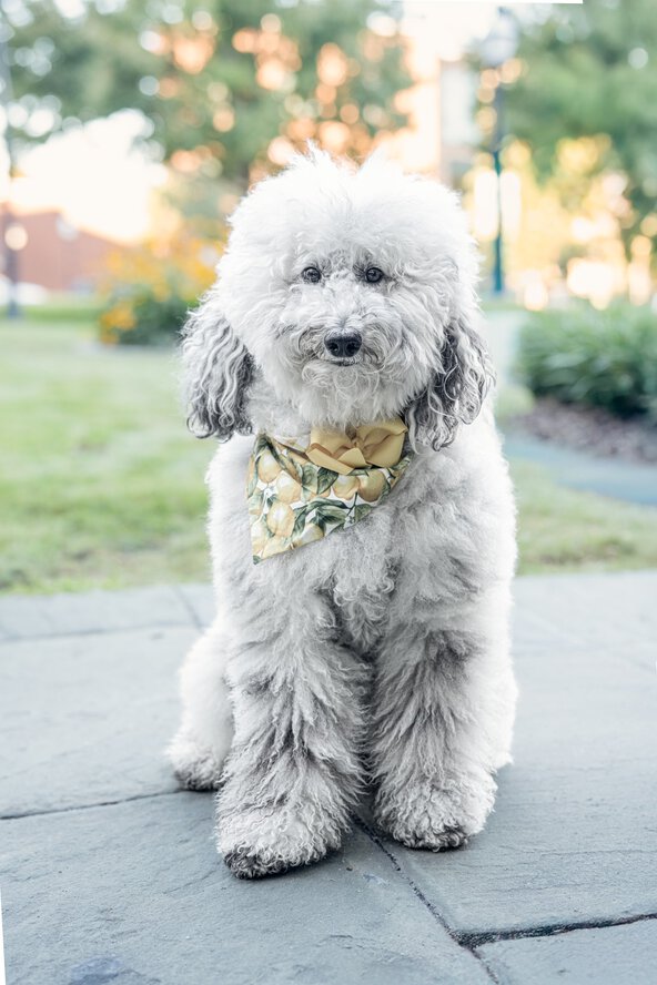 Agnes is a golden doodle who started our program with Baskin in September 2020. She worked with the Child Life team on the Cancer and Blood Disorders Unit and retired in June of 2022. You can still find her artwork floating around the hospital as she loved to leave her "paw" print for people to remember her.