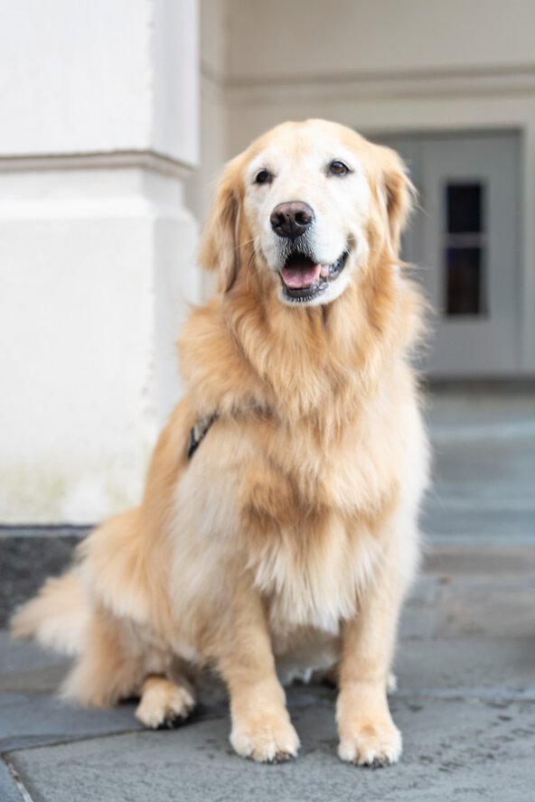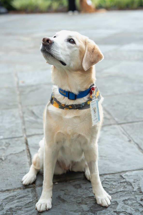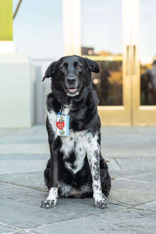 Baskin is large golden retriever who started our program in September 2020. He originally worked with the Child Life team on our Acute Care Inpatient Unit, and is now primarily focused on supporting our wonderful care team members. He makes sure everyone is checked on regularly and does not miss an opportunity to sniff out who has the treats.